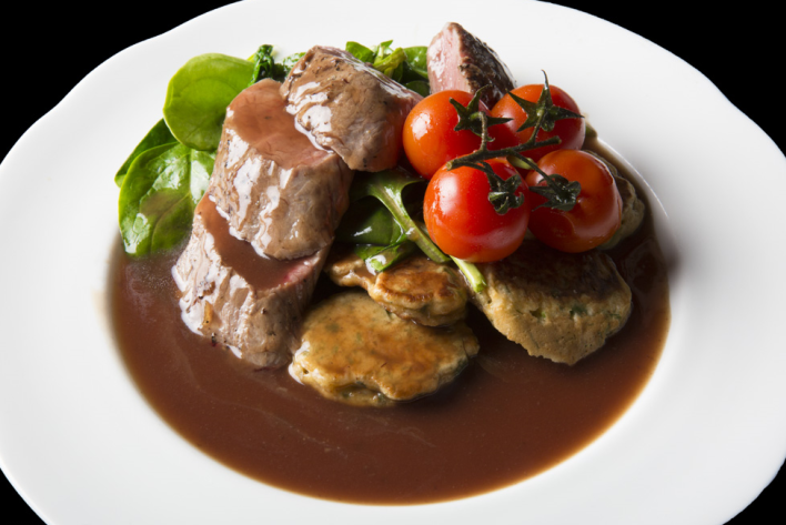 Pan fried fillet of beef served on a horseradish rosti drizzled with béarnaise sauce.